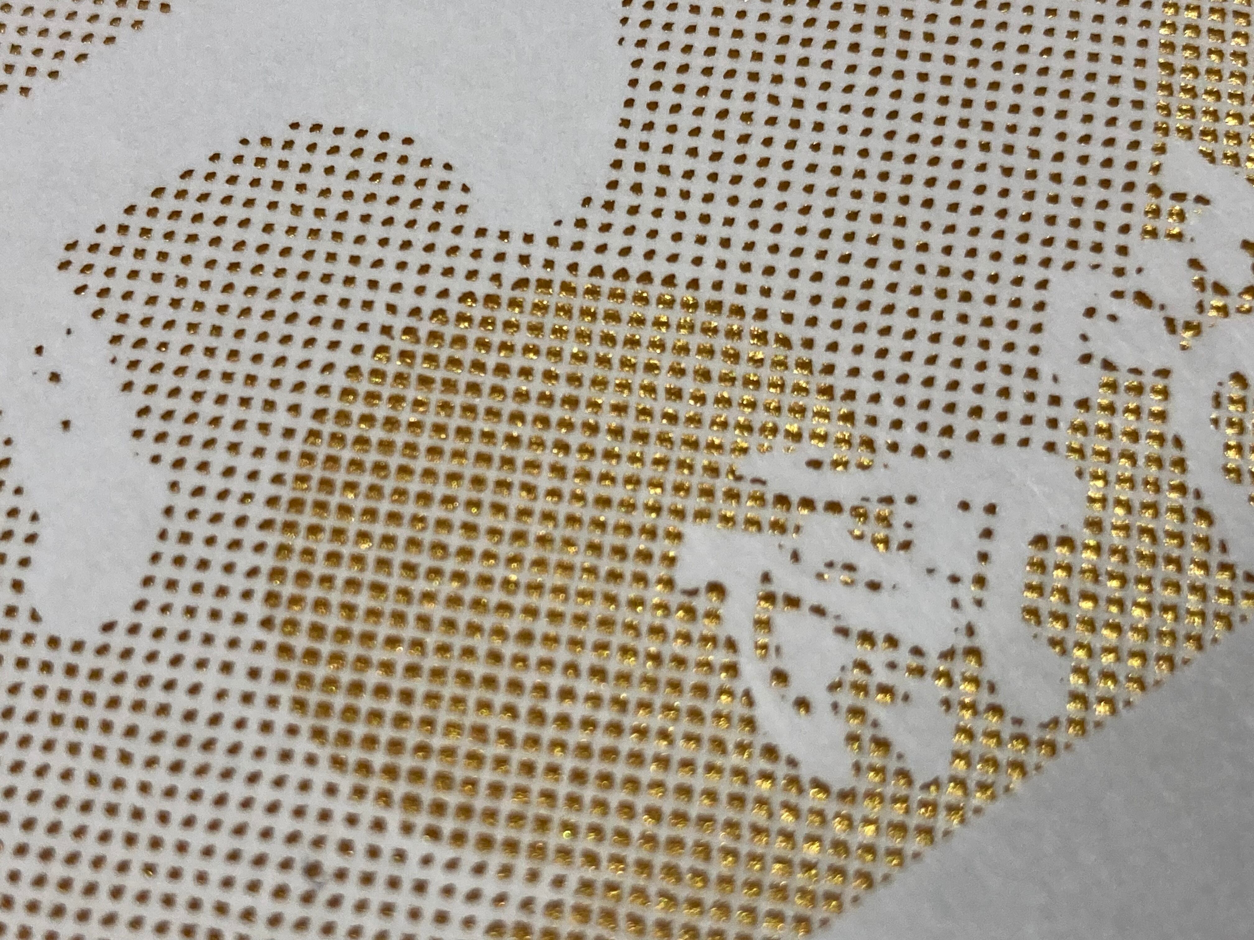 印刷ではないの見た目は少し地味に感じますが、近くで見るとレーザー加工の凄さが分かります。